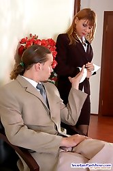 Nasty secretary in control top tights getting her twat ploughed from behind