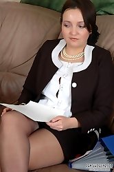 Nasty chubby teaser flashing her thong under the black hose seducing a guy