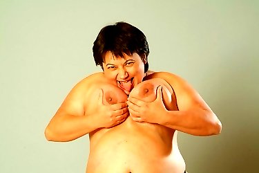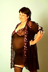 Mature BBW Belane wears her sexy stockings as she pump a huge cock up her fat pussy